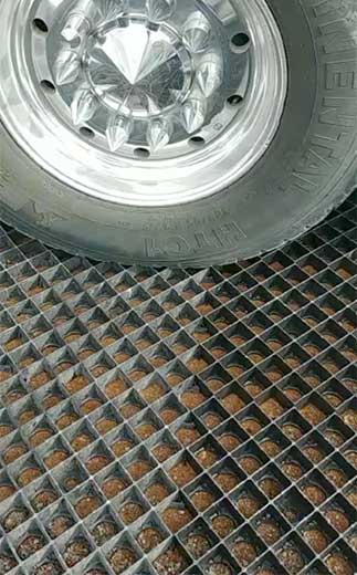 Dos de nuestros rejillas de plástico para pisos cuentan con la resistencia de carga de 70 hasta 90 Toneladas por m2. El peso se distribuye en la malla, y no se ejerce en un solo punto. ( no cuenta como carga puntual)