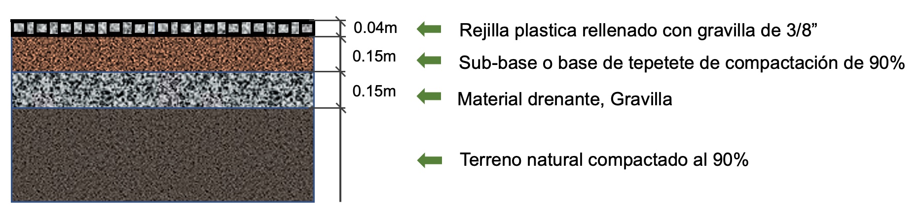 3,- Sub-base o base de tepetate de 15 cm compactada al 90%.
